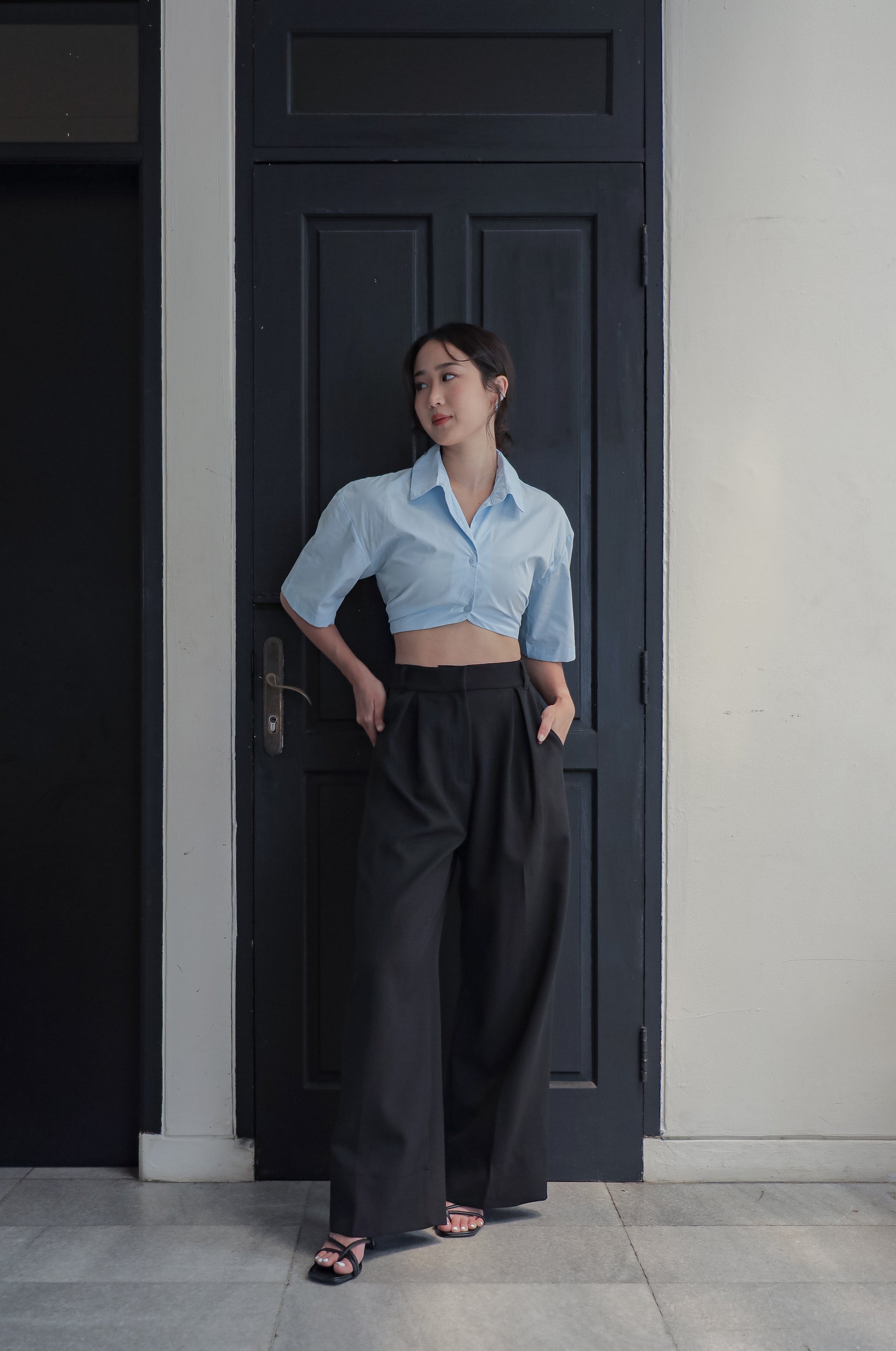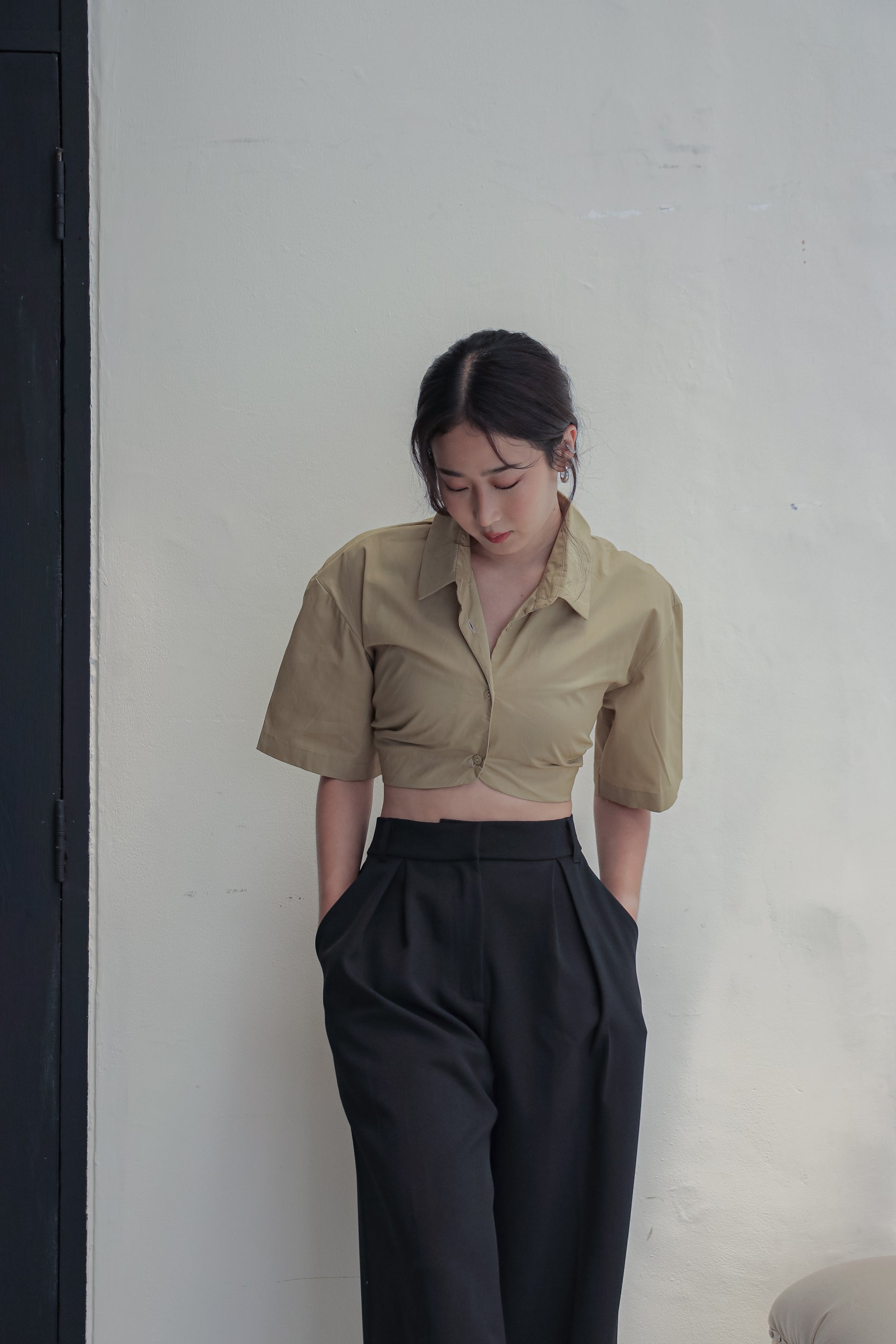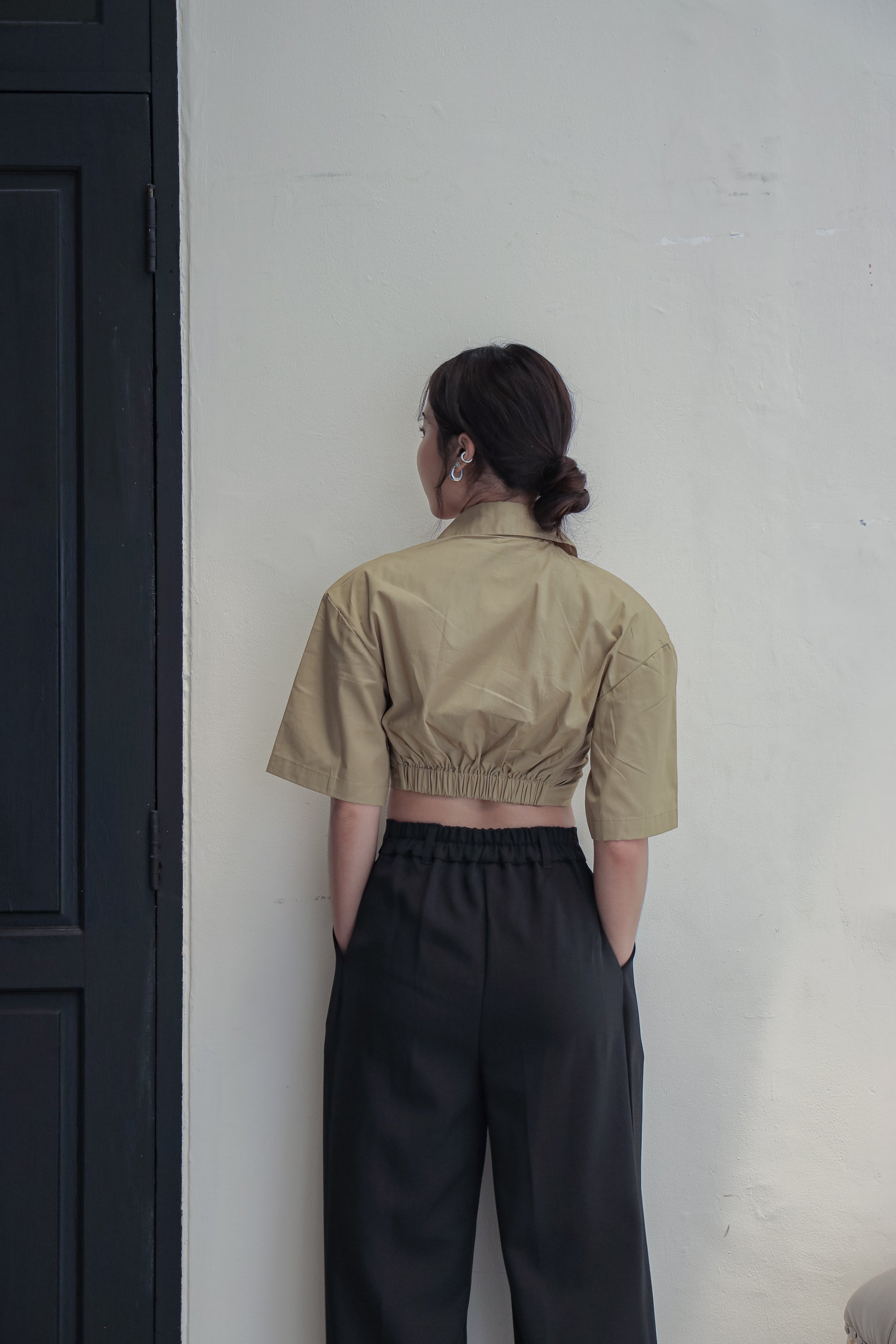 A cropped shirt reimagined. Cut from 100% cotton, this piece features a clean button-up front with boxy sleeves. The back is finished with an elasticated part that keeps the fit comfortable. This minimal, timeless piece pairs well with your high-waisted trousers.